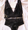 Todo na renda, não possui aro, alças ajustaveis, não possui fecho de na parte de trás, forro 100% algodão na parte interna.